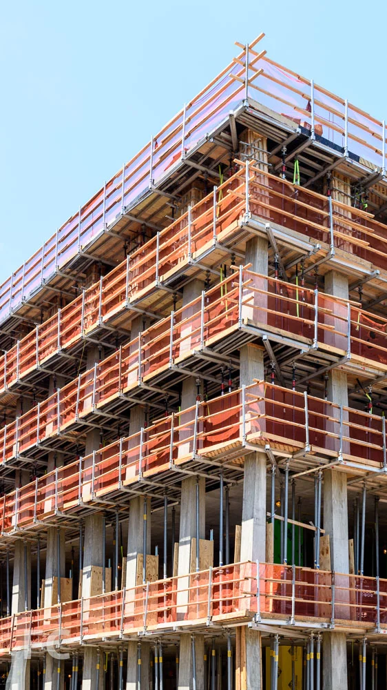 Superstructure progress continues at 215 Chrystie, with concrete reaching the sixth floor slab. The 28-story tower from developers Ian Schrager and the Witkoff Group will include 370 hotel rooms under the PUBLIC brand at the lower levels and 11 condos on the upper floors. Pritzker Prize winning architects Herzog & de Meuron have designed the tower as a rectangular extrusion with a setback volume for the upper condo floors. Sloping floor-to-ceiling glass panels are set in between angular, exposed concrete columns. Interiors on the luxury condos will be designed by John Pawson, with both half floor and full floor units. The top of the tower will be capped with a three story mechanical penthouse. Completion is slated for the fourth quarter of next year.