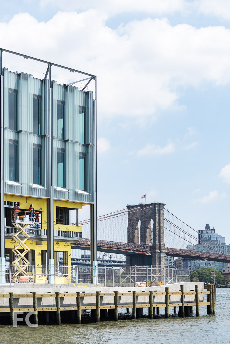 Southeast corner of Pier 17 with the Brooklyn Bridge in the background.