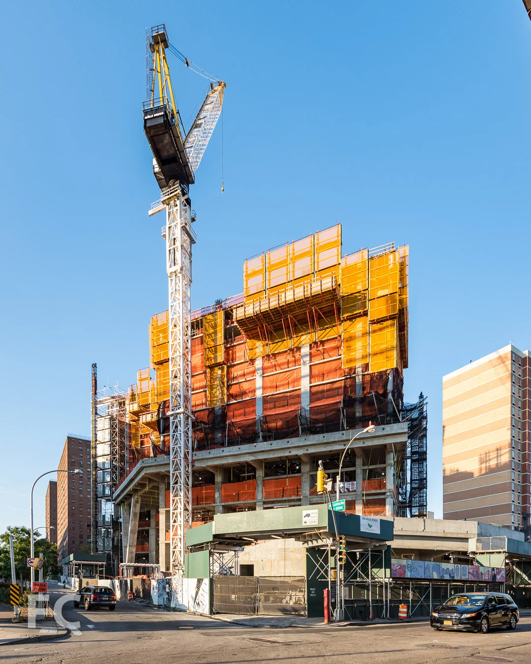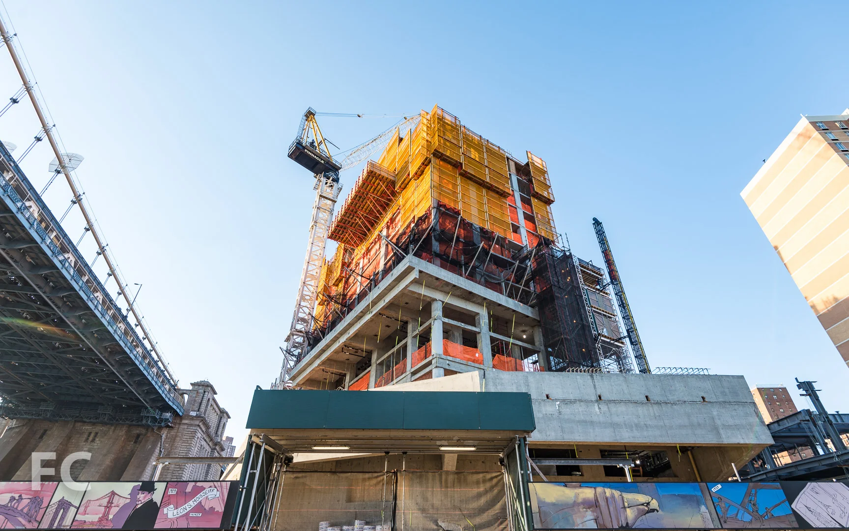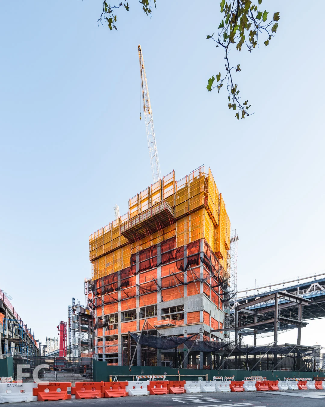 Superstructure is rising at Extell's One Manhattan Square, a residential condominium tower on the Lower East Side waterfront. Designed by Adamson Associates, the 80-story tower replaces a former Pathmark grocery store. The tower will offer 815 residential condo units with over 100,000 square feet of indoor and outdoor amenities.