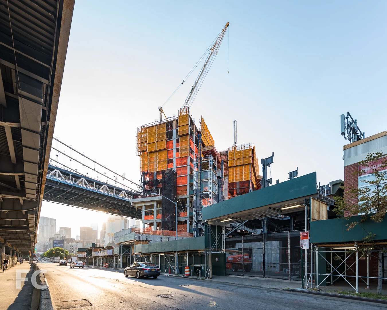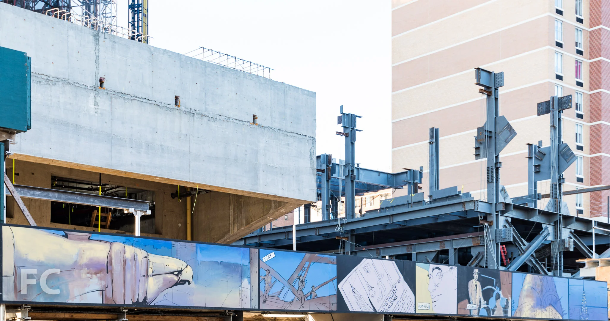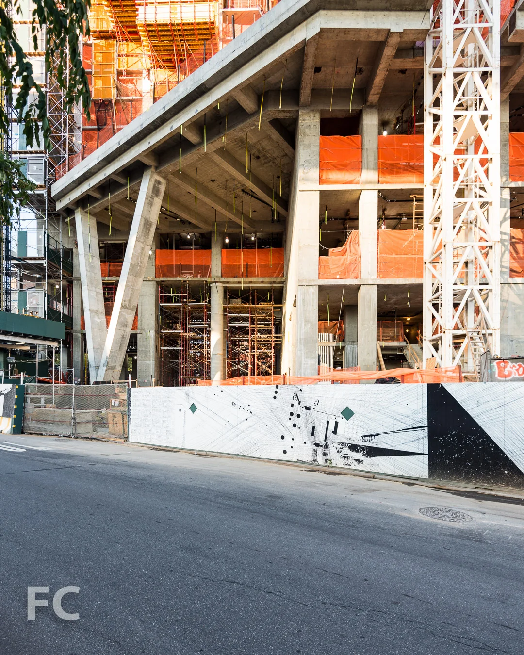 During construction, the developer has tapped artists Margaret Urias, Nicholas Forker, and Jessica Tynk to help enliven the site's construction sheds with imagery of the inspiration behind the development.
