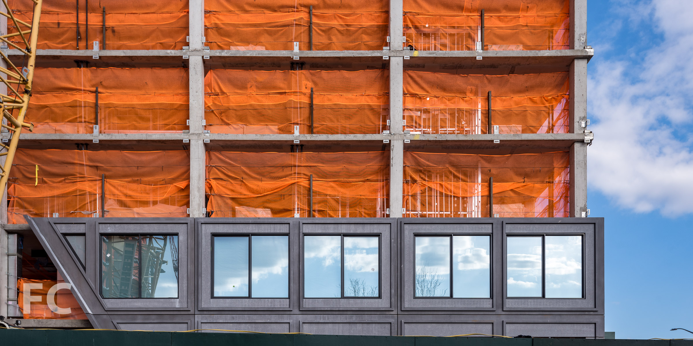 Facade panels at the southwest corner of 15 Bridge Park Drive.