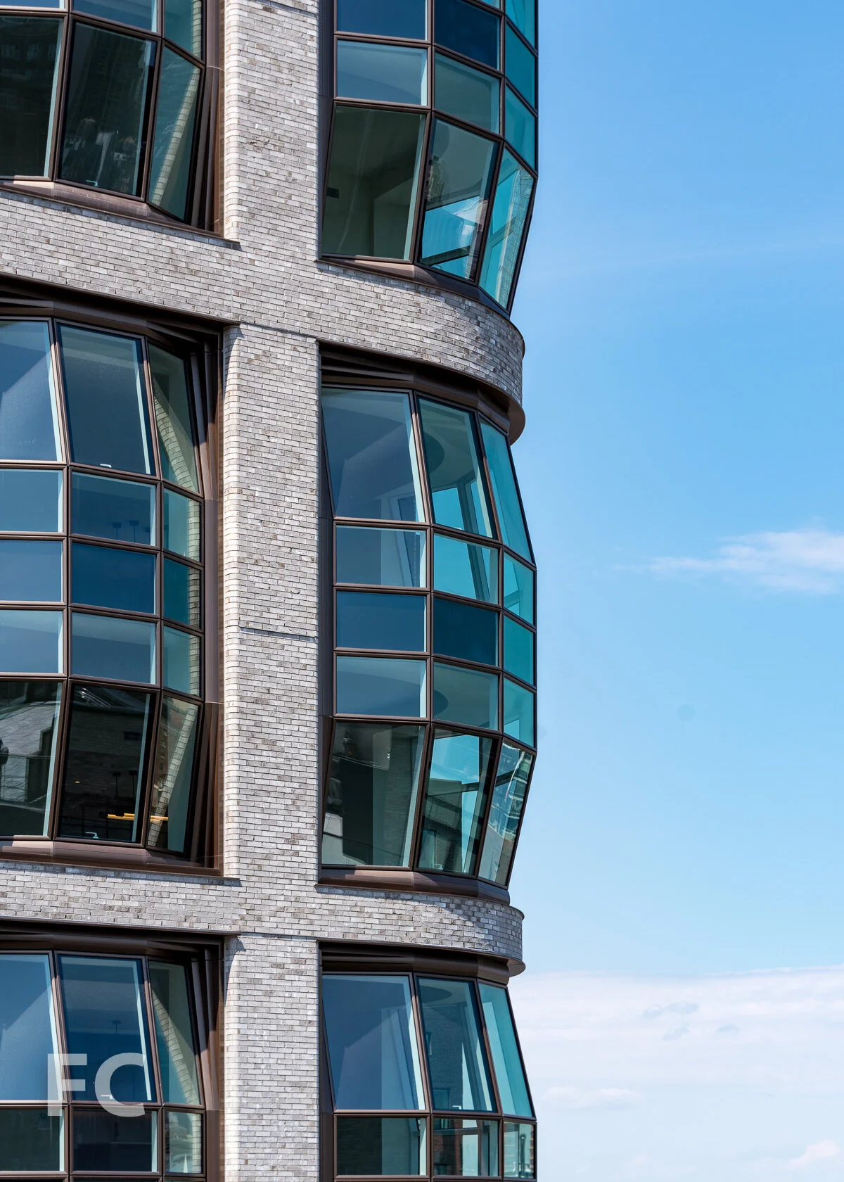 Construction is wrapping up at the east tower of Related’s two-tower residential development at the High Line in Chelsea. Designed by Thomas Heatherwick’s Heatherwick Studio, the 22-story west tower and 10-story east tower flank the High Line and connect to each other underneath the park’s elevated railroad structure. The facade features custom masonry and Heatherwick’s modern take on the bay window.