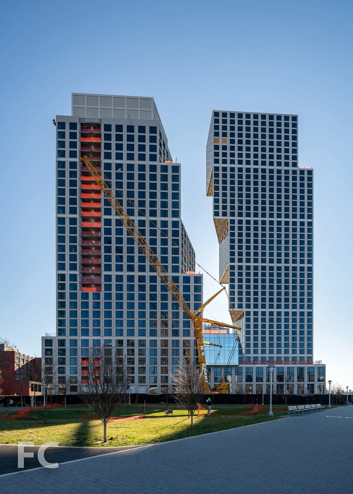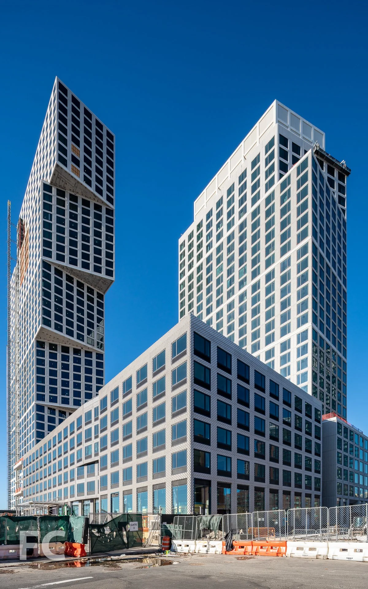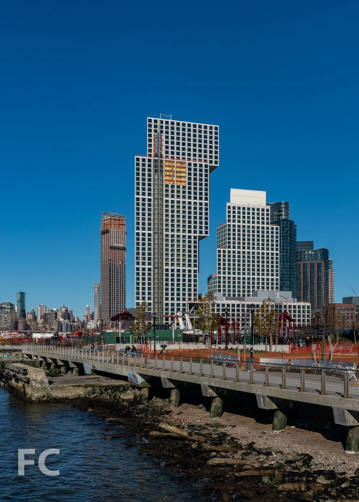 Architect: OMA New York with Beyer Blinder Belle; Structural Engineer: DeSimone Consulting Engineers; MEP and LEED: Cosentini Associates; Facade: Thornton Tomasetti; Waterfront Landscape Architect: James Corner Field Operations; Interior and Landscape Architect: Marmol Radziner; Concrete: Highbury Concrete; Developers: Brookfield Property Partners, Park Tower Group; Program: Residential, Retail, Park; Location: Greenpoint, Brooklyn, NY; Completion: 2022.