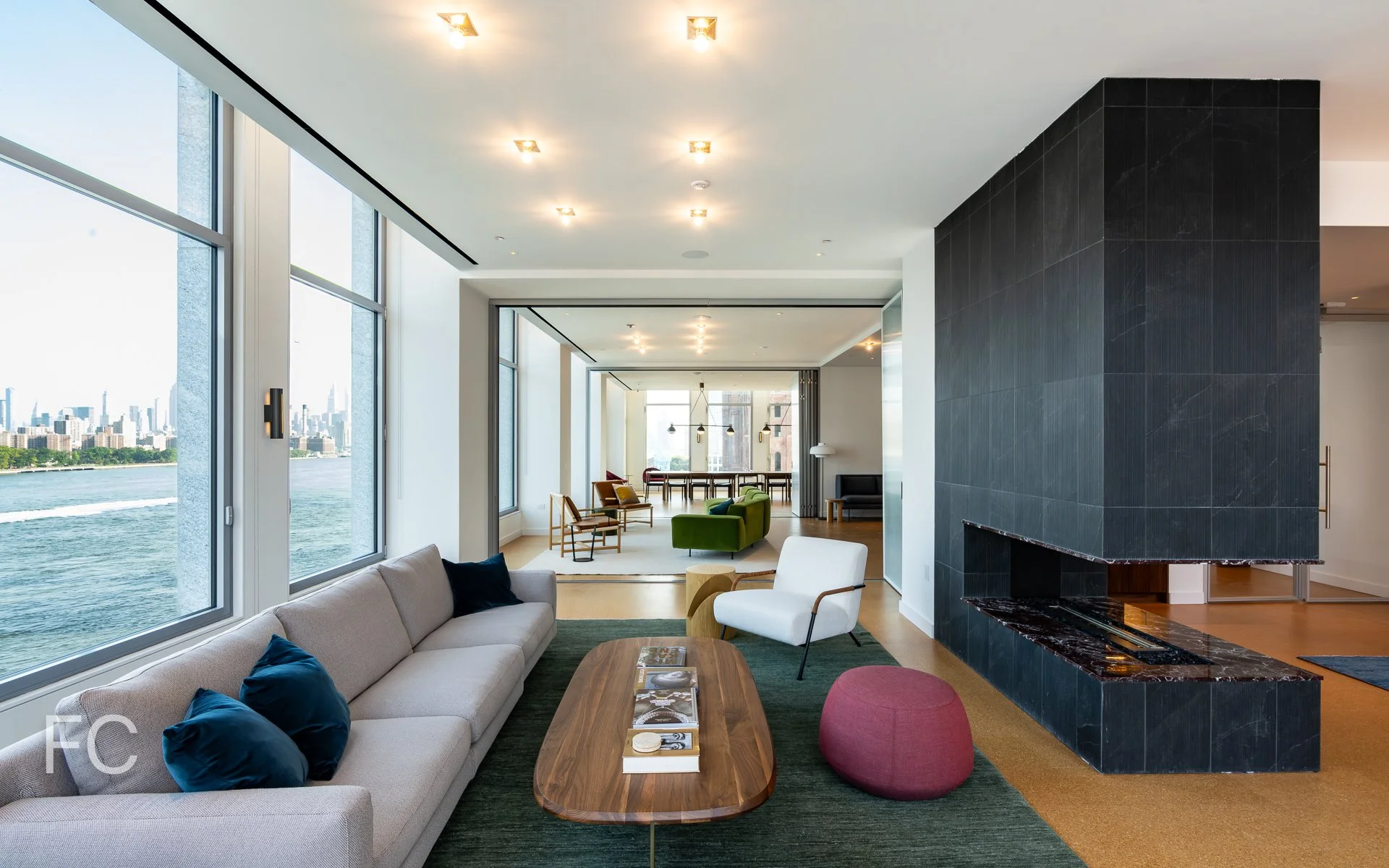The north tower includes 160 condo residences ranging in size from one- to three-bedrooms. Features include kitchens designed in a cool or warm palette, Gaggenau kitchen appliances, honed Direto Grey River Stone bathroom floors and wall cladding, bespoke faucets and fittings by Phylrich, 6” wide plank white oak flooring, and custom closets.