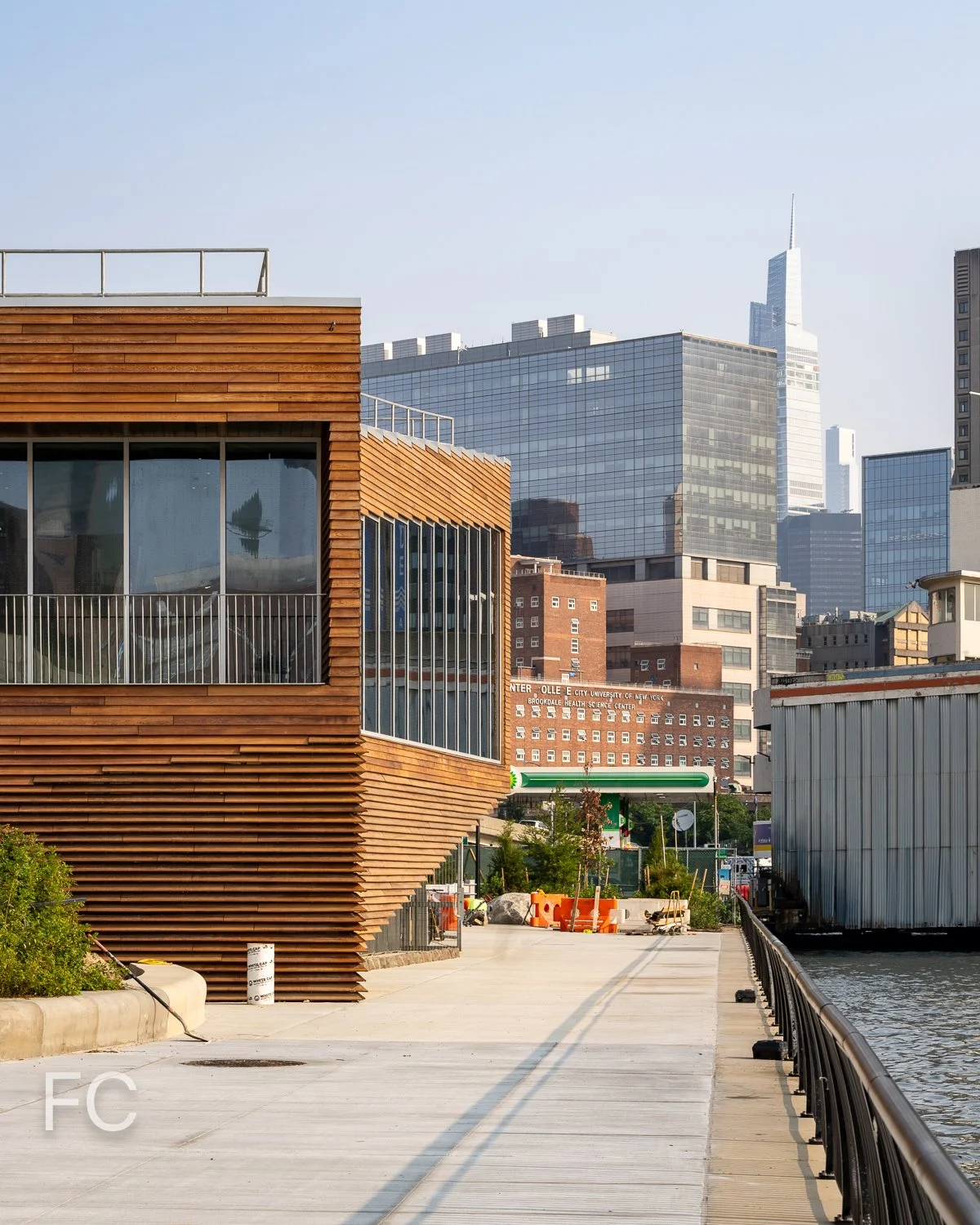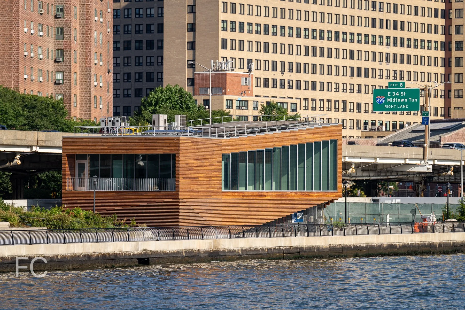 East facade of the Solar One Center and Stuyvesant Cove Park from the East River.