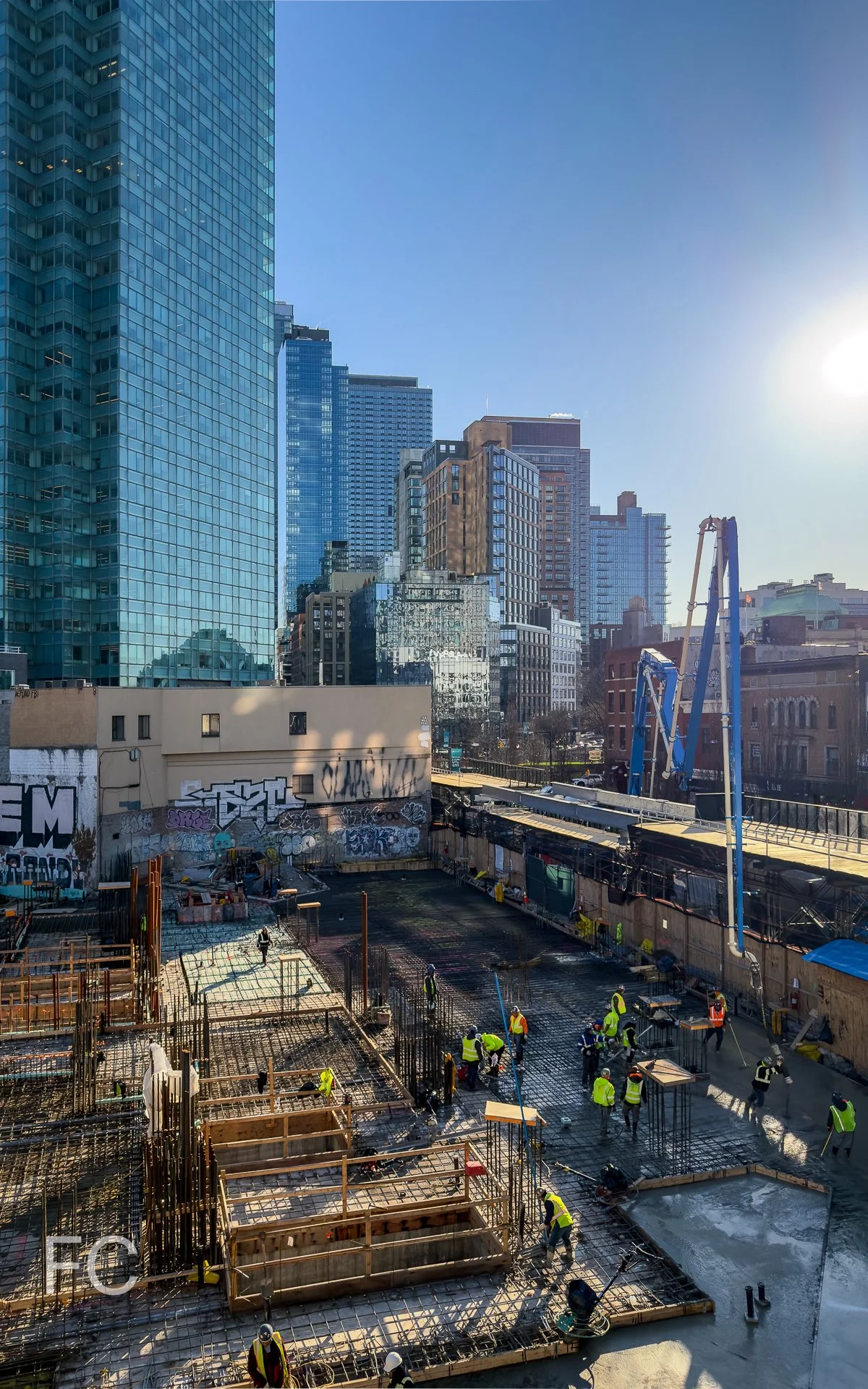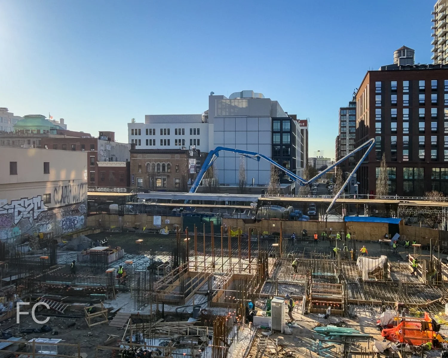 Construction has reached street level at Charney Companies’ 53-story residential and commercial tower at 45-03 23rd Street in Long Island City. Designed by FXCollaborative, the tower is located adjacent to the Court Square subway station and will offer residential rentals and condos above a three-story retail podium. Work is underway on the concrete superstructure at the podium and completion of the 725,000 GSF project is slated for 2028.
